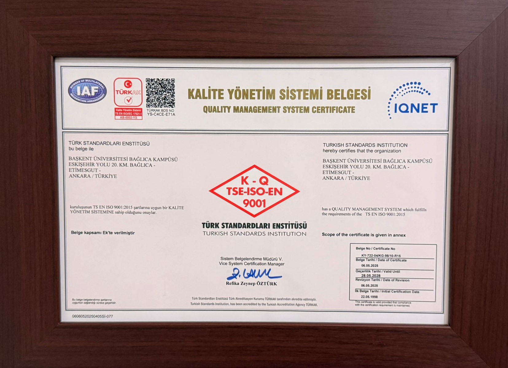 Başkent Üniversitesi, sağlık ve eğitim alanındaki faaliyetlerini kuruluşundan bu yana uluslararası kalite standartları doğrultusunda sürdürmektedir. 1998 tarihinde ISO kalite belgesini alarak Türkiye'de bu alanda öncü vakıf üniversitelerinden biri olmuştur. Kalite yönetim sistemi, güncel uluslararası standartlara uygun olarak sürekli geliştirilmekte ve "TS EN ISO 9001:2015 Kalite Yönetim Sistemi" standardı kapsamında uygulanmaktadır.